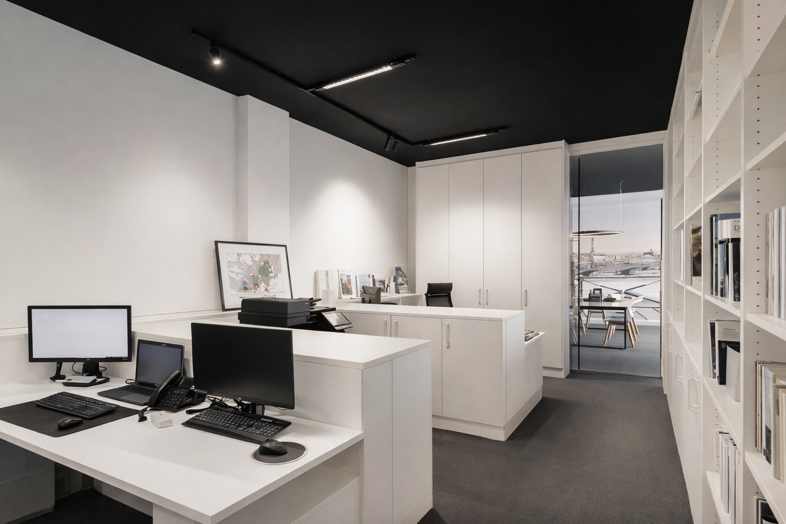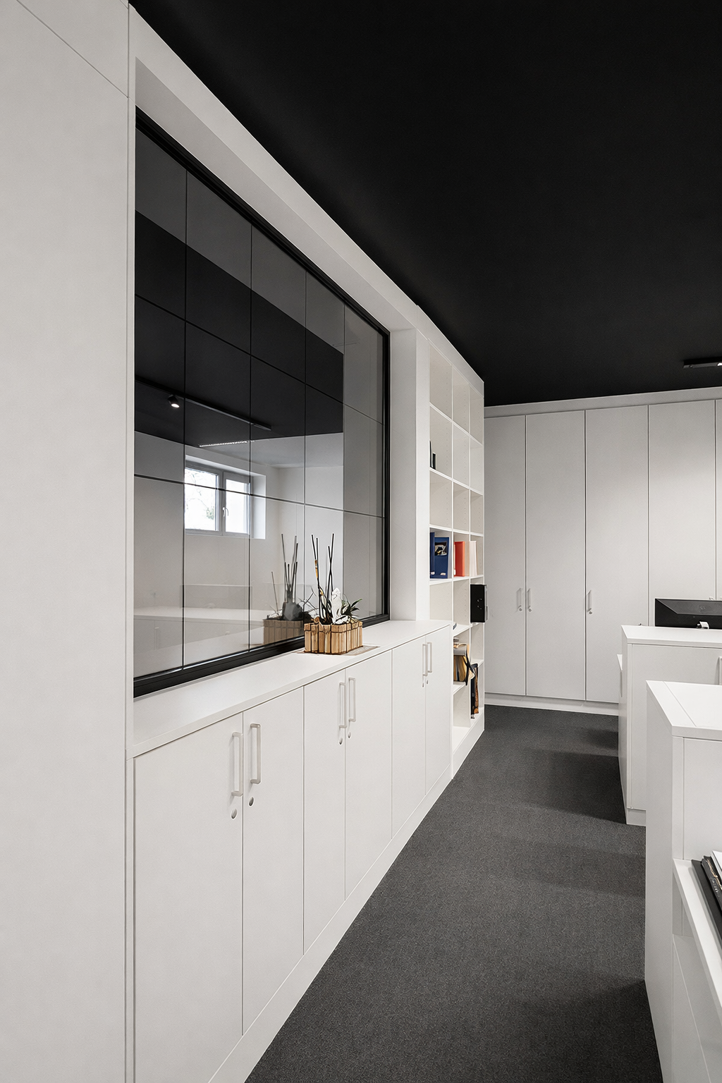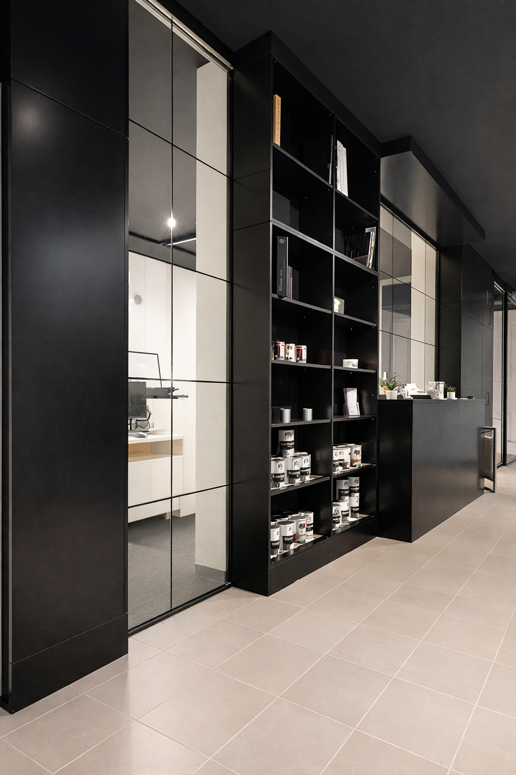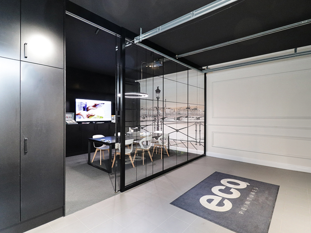 Conception des ateliers de la société Eco Peintures. Un mélange de bois et de verre réalisé dans un style industriel, crée un environnement atypique