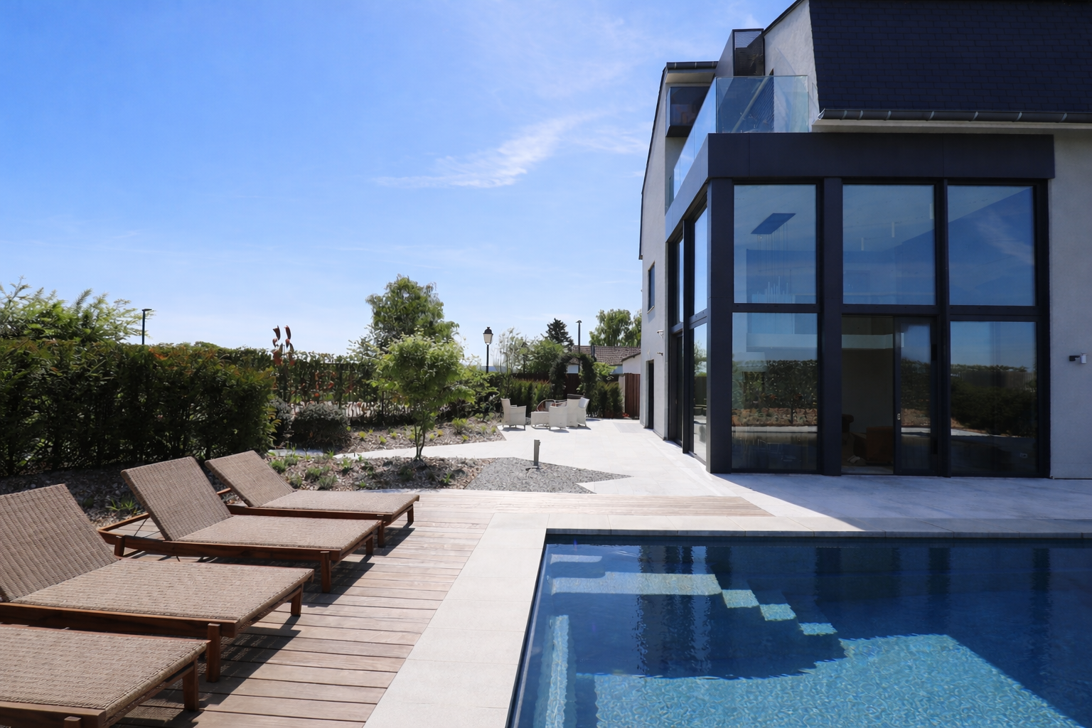 Une piscine contemporaine attire désormais les regards, tandis qu’une atmosphère inspirée du sud de la France apporte une sensation de détente et de douceur. Un soin particulier a également été apporté à l’acoustique intérieure, grâce à une collaboration étroite avec l’atelier de menuiserie design Constantin Jacques, afin d’assurer un confort sonore optimal dans tous les espaces. Un projet pensé dans les moindres détails, au service d’un art de vivre harmonieux.